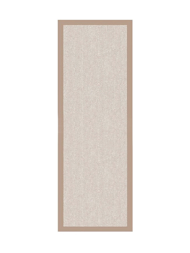 Елегантна пътека с фин десен „рибена кост“, който придава текстура и стил без да натоварва интериора. Комбинацията от светъл бежов фон и рамка в цвят капучино създава топло и уютно излъчване, подходящо за модерни и класически пространства.